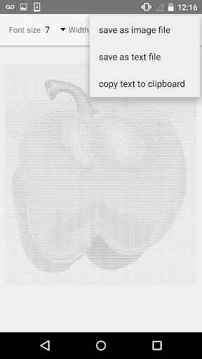 With a single press of a button this app creates elaborate ASCII art from the photograph or picture you selected and displays it on the screen. You can then experiment with various options, including font size as well as the desired number of characters used in the generated ASCII art before saving the results. You can also specify the background as well as text colour used and whether you want the image to be a negative (light text on dark background).